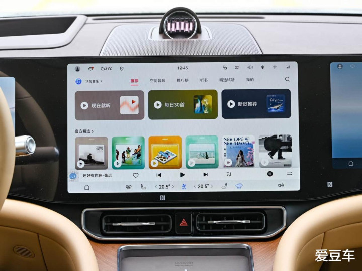 首先,看看新车内饰有何不同。双层环抱式座舱瞬间带来包裹感,座椅的支撑性也很足。Nappa真皮大面积覆盖,搭配天然白栓木与水晶材质装饰,豪华感与高级感拉满。